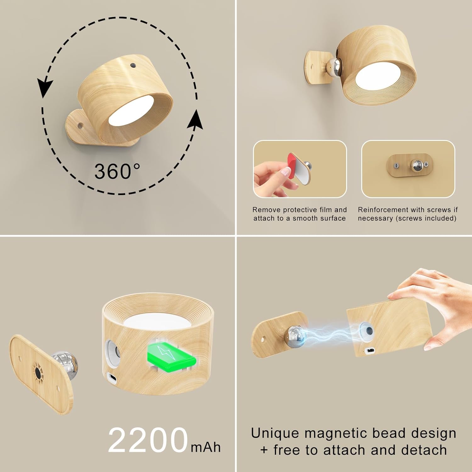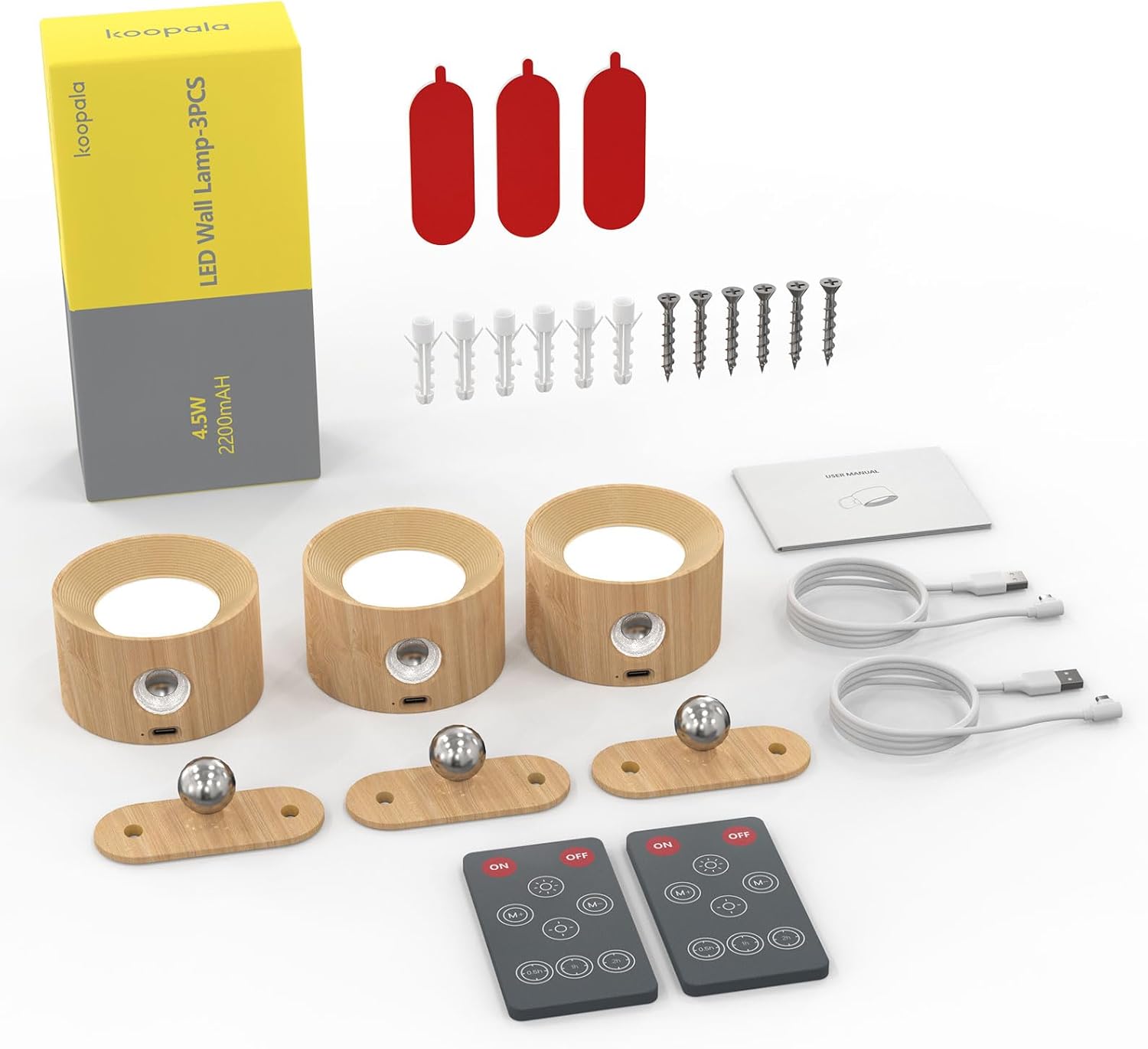 Illuminate your space with the Koopala 3PACK Rechargeable LED Wall Sconce. This versatile and stylish lighting solution is perfect for any room, featuring a sleek wood grain color that complements your decor. Each cordless battery-powered sconce comes with a convenient remote control, allowing you to adjust the brightness with ease. Choose from three brightness levels to create the perfect ambiance for reading or relaxing by your bedside. The innovative 360° swivel magnetic shade provides flexibility, allowing you to direct light exactly where you need it. Ideal for bedrooms, living rooms, or any area that requires a touch of elegance and functionality, the Koopala LED Wall Sconce is the perfect addition to your home lighting collection. Enjoy the convenience of rechargeable batteries and the freedom of cordless design, making installation a breeze. Upgrade your lighting experience today with this stylish and practical wall sconce set!