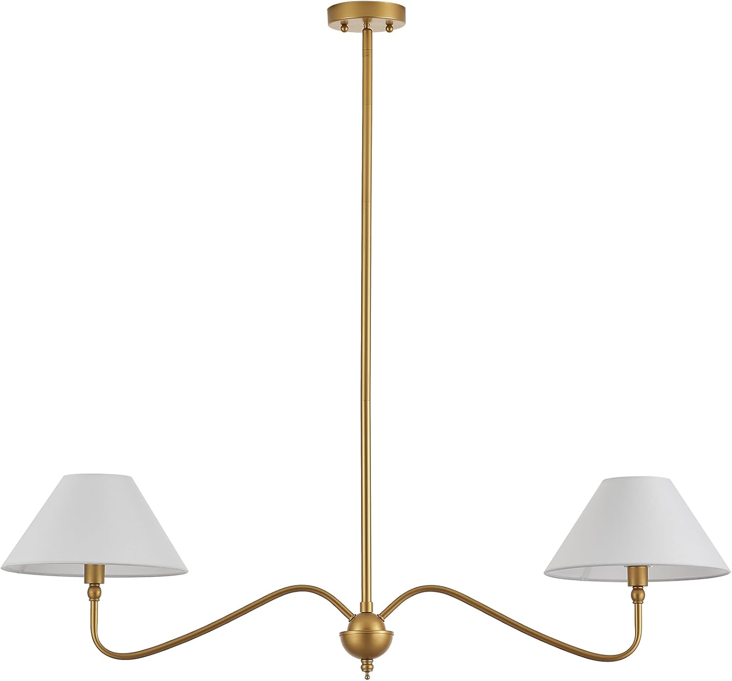 Illuminate your space with the Modern Gold Linear Chandelier, a stunning 2-light linear light fixture designed to elevate your kitchen island or dining room. This exquisite chandelier features a sleek gold finish that adds a touch of elegance and sophistication to any decor. The off-white fabric shades provide a warm, inviting glow, perfect for creating a cozy atmosphere during family dinners or entertaining guests.